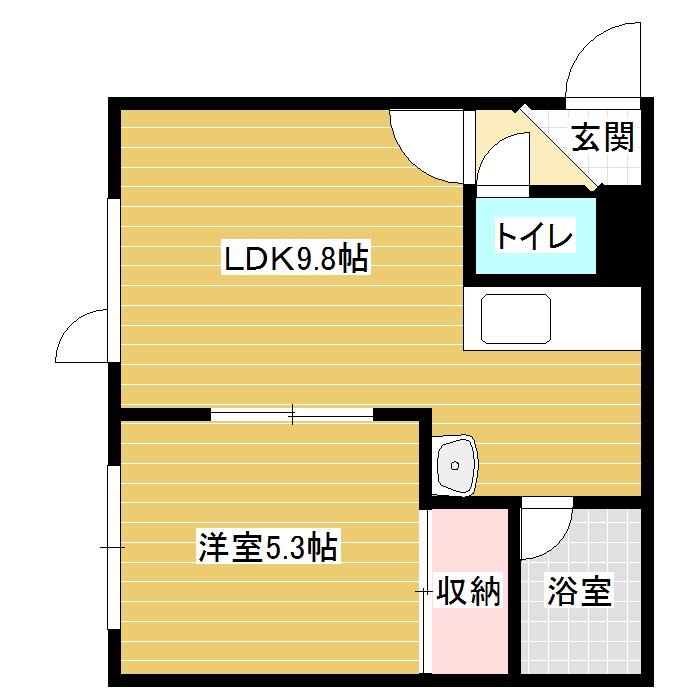 | 間取り詳細 | DK(9.7帖)、洋室(5.3帖) | ||