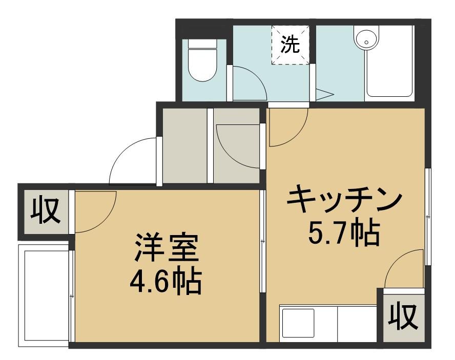 | 間取り詳細 | DK(5.7帖)、洋室(4.6帖) | ||