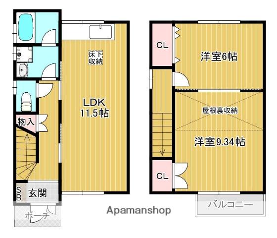 | 間取り詳細 | LDK(11.5帖)、洋室(9.3帖)、洋室(6帖) | ||