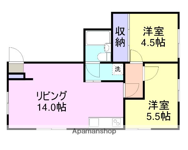 | 間取り詳細 | LDK(14帖)、洋室(5.5帖)、和室(4.5帖) | ||