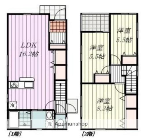 | 間取り詳細 | LDK(16.2帖)、洋室(5.5帖)、洋室(5.5帖)、洋室(8.3帖) | ||