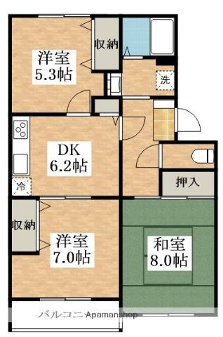 | 間取り詳細 | DK(6.2帖)、洋室(7帖)、洋室(5.3帖)、和室(8帖) | ||