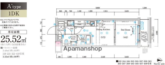 | 間取り | 1DK | 専有面積 | 25.52m2 |