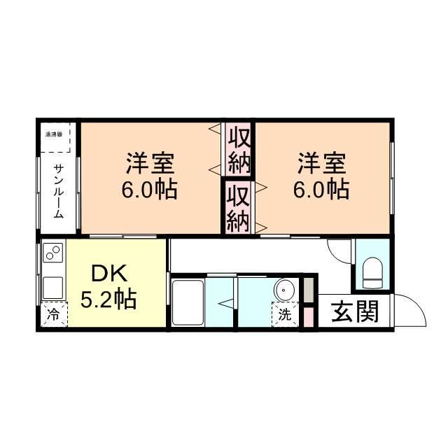 | 間取り詳細 | K(5.2帖)、洋室(6帖)、洋室(6帖) | ||