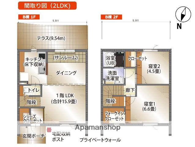| 間取り詳細 | LDK(15.9帖)、洋室(6.6帖)、洋室(4.5帖) | ||