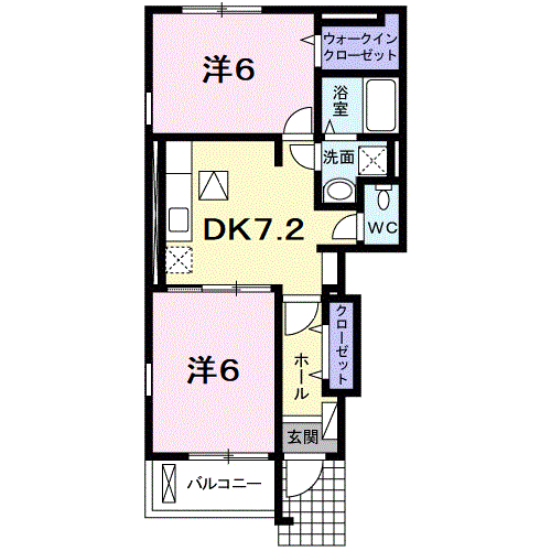 | 間取り詳細 | DK(7.2帖)、洋室(6帖)、洋室(6帖) | ||