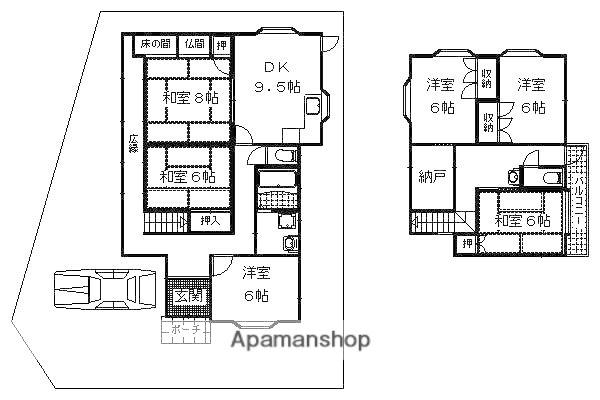 | 間取り詳細 | 和室(6帖)、和室(8帖)、洋室(6帖)、洋室(6帖)、洋室(6帖)、和室(6帖)、その他(3帖)、LDK(9.5帖) | ||