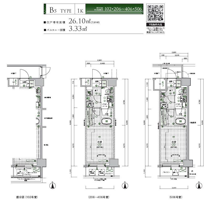 | 間取り | 1K | 専有面積 | 26.1m2 |