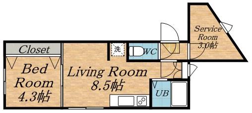 | 間取り詳細 | DK(8.5帖)、洋室(4.3帖)、S(0帖) | ||