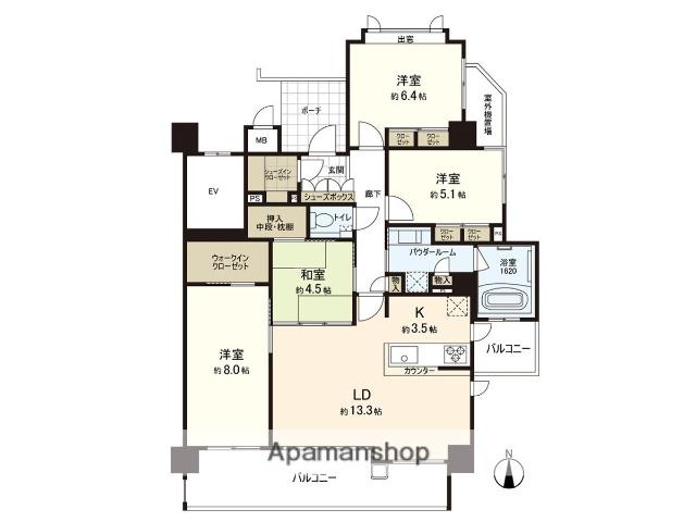 | 間取り詳細 | LDK(16.8帖)、洋室(8帖)、洋室(6.4帖)、洋室(5.1帖)、和室(4.5帖) | ||