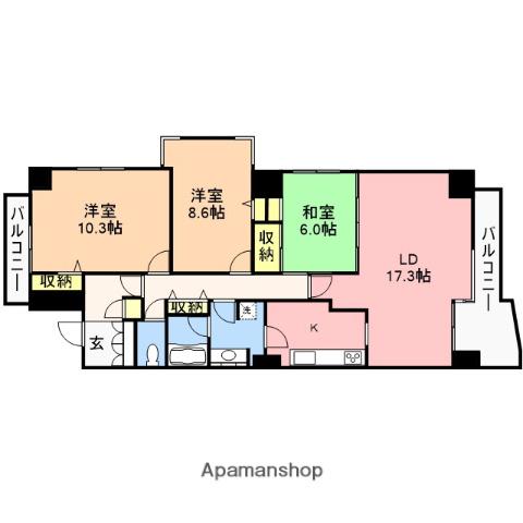 | 間取り詳細 | LDK(17.3帖)、洋室(10.3帖)、洋室(9.5帖) | ||