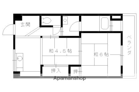 | 間取り詳細 | K(2帖)、和室(6帖)、和室(4.5帖) | ||