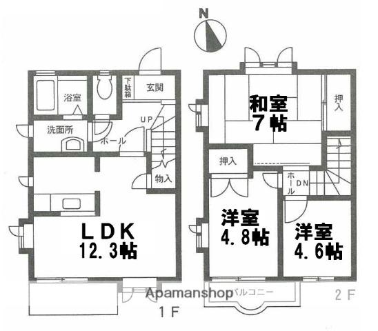 | 間取り詳細 | 洋室(4.8帖)、洋室(4.6帖)、和室(7帖)、LDK(12.3帖) | ||