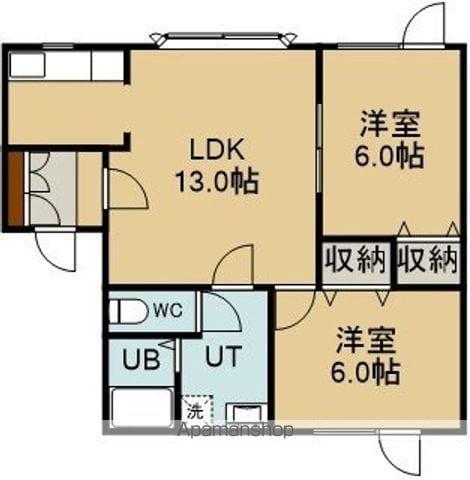 | 間取り詳細 | LDK(13帖)、洋室(6帖)、洋室(6帖) | ||
