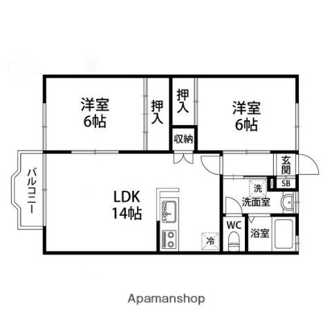 | 間取り詳細 | LDK(14帖)、洋室(6帖)、洋室(6帖) | ||