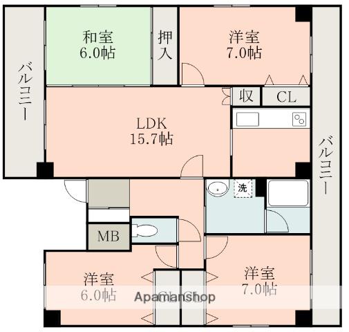 | 間取り詳細 | LDK(15.7帖)、洋室(7帖)、洋室(7帖)、洋室(6帖)、和室(6帖) | ||