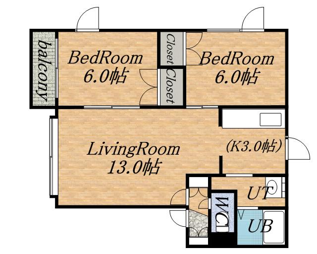 | 間取り | 2LDK | 専有面積 | 59m2 |
