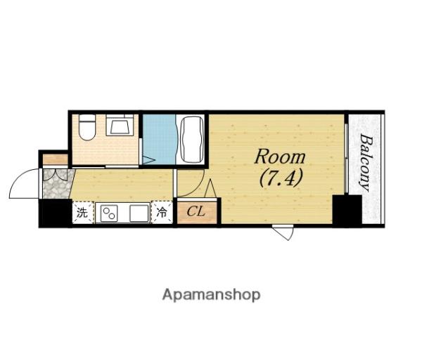 | 間取り詳細 | K(2帖)、洋室(7.4帖) | ||