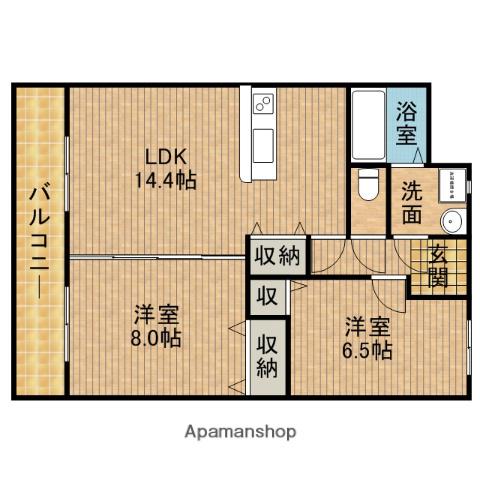 | 間取り詳細 | 洋室(6.5帖)、洋室(8帖)、LDK(14.4帖) | ||