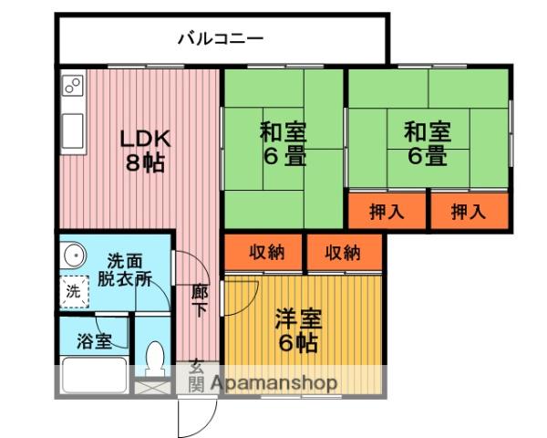 | 間取り詳細 | LDK(8帖)、和室(6帖)、和室(6帖)、洋室(6帖) | ||