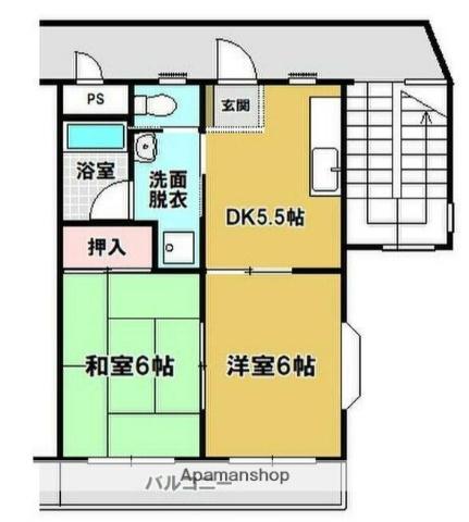 | 間取り詳細 | 洋室(6帖)、和室(6帖)、DK(5.5帖) | ||