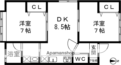 | 間取り詳細 | 洋室(7帖)、洋室(7帖)、DK(8.5帖) | ||