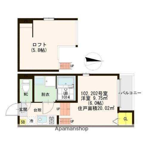 | 間取り | 1K | 専有面積 | 21.02m2 |