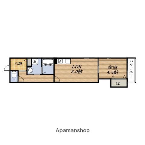 | 間取り詳細 | LDK(8帖)、洋室(4.5帖) | ||