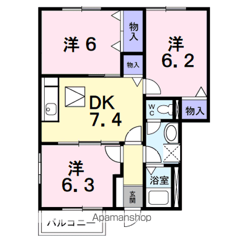 | 間取り | 3DK | 専有面積 | 56.08m2 |
