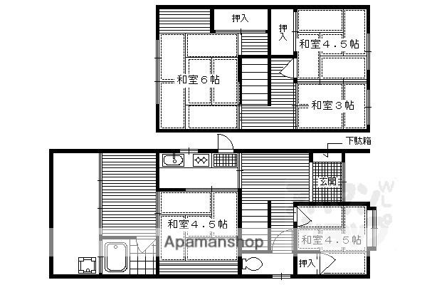 | 間取り詳細 | K(2帖)、和室(6帖)、和室(4.5帖)、和室(4.5帖)、和室(4.5帖)、和室(3帖) | ||