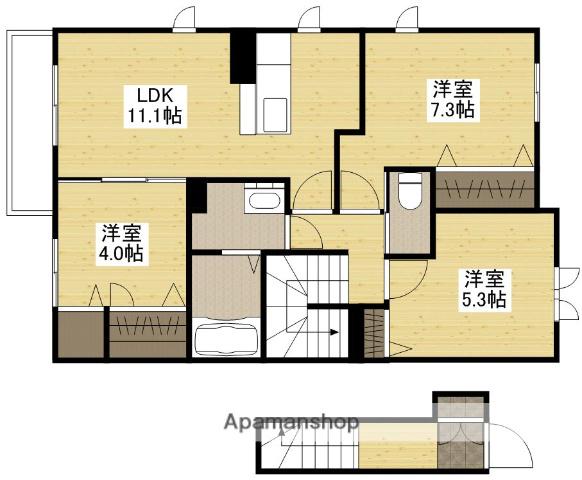 | 間取り詳細 | LDK(11.1帖)、洋室(4帖)、洋室(5.3帖)、洋室(7.3帖) | ||