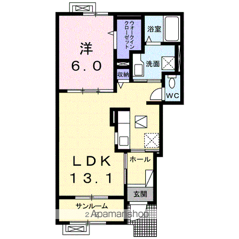 | 間取り詳細 | 洋室(6帖)、LDK(13帖)、その他(2帖) | ||