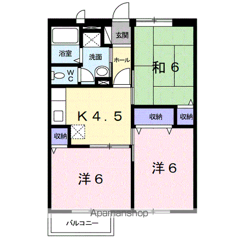 | 間取り詳細 | 和室(6帖)、和室(6帖)、洋室(6帖)、K(4.5帖) | ||