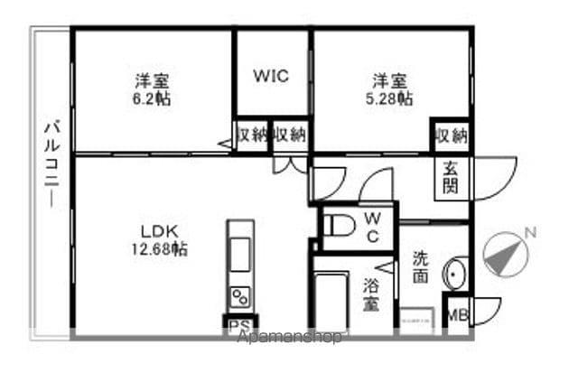 | 間取り | 2LDK | 専有面積 | 59.84m2 |