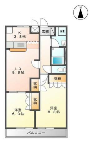 | 間取り詳細 | 洋室(8.2帖)、洋室(6帖)、LDK(12.6帖) | ||