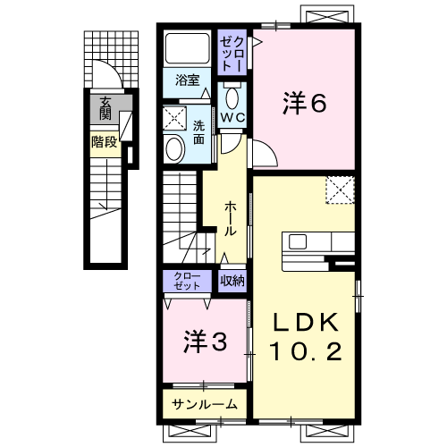 アパート プロプルIII(2LDK/2階) | |||||||
