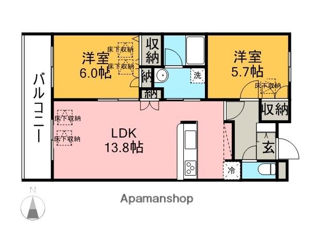 | 間取り詳細 | LDK(13.8帖)、洋室(5.7帖)、洋室(6帖) | ||