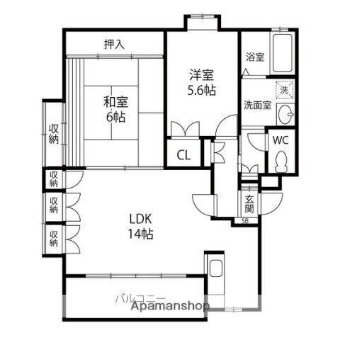 | 間取り詳細 | 和室(6帖)、洋室(5.6帖)、LDK(14帖) | ||