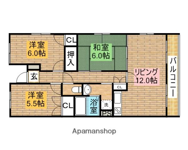 | 間取り詳細 | LDK(12帖)、和室(6帖)、洋室(5帖)、洋室(5.5帖) | ||