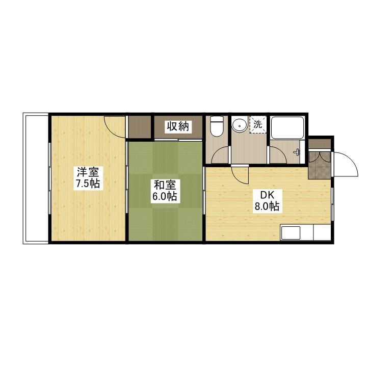 | 間取り詳細 | DK(8帖)、洋室(7.5帖)、和室(6帖) | ||
