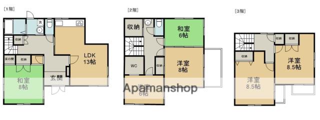 | 間取り詳細 | LDK(13帖)、洋室(8.5帖)、洋室(8.5帖)、洋室(8帖)、洋室(6帖)、和室(8帖)、和室(6帖) | ||