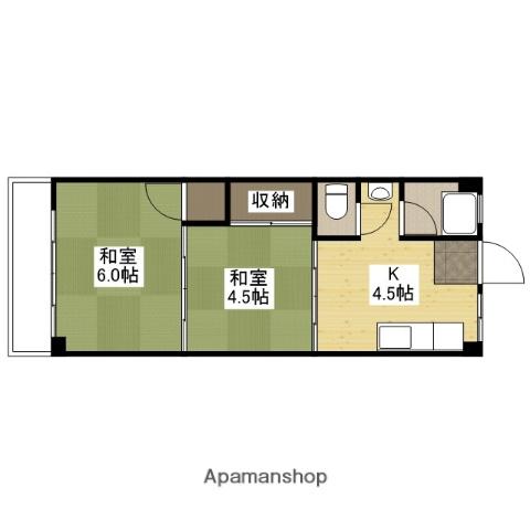 | 間取り詳細 | K(4.5帖)、和室(6帖)、和室(4.5帖) | ||
