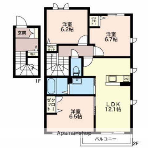 | 間取り詳細 | LDK(12.1帖)、洋室(6.4帖)、洋室(6.2帖)、洋室(6.7帖) | ||