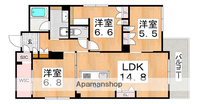 | 間取り詳細 | LDK(14.8帖)、洋室(6.8帖)、洋室(6.6帖)、洋室(5.5帖) | ||