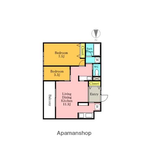 | 間取り詳細 | LDK(11.9帖)、洋室(3.3帖)、洋室(7.5帖) | ||