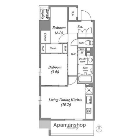 | 間取り | 2LDK | 専有面積 | 50.4m2 |