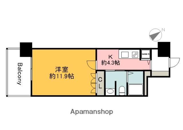 | 間取り詳細 | K(4.3帖)、洋室(11.9帖) | ||
