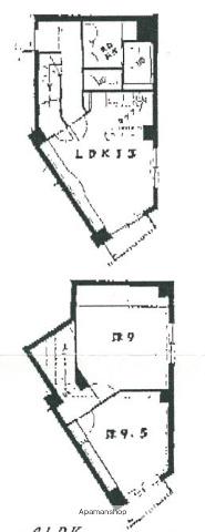 | 間取り詳細 | LDK(13帖)、洋室(9.5帖)、洋室(9.5帖) | ||