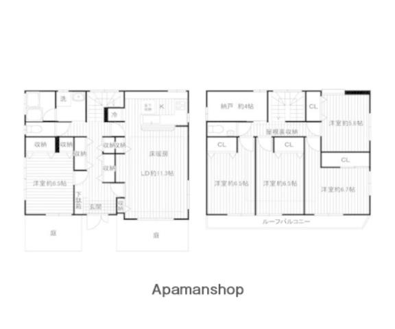 | 間取り詳細 | LD(11.3帖)、洋室(6.5帖)、洋室(6.7帖)、洋室(6.5帖)、洋室(6.5帖)、洋室(5.8帖)、S(4帖) | ||