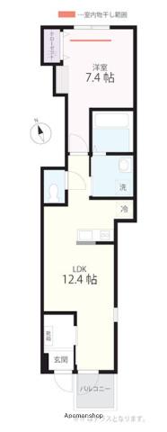 | 設備 | バス・トイレ別、テレビドアホン、宅配ボックス、インターネット対応、温水洗浄便座、フローリング、コンロ:IH、デザイナーズ、CATV、インターネット使用料無料、シャワー、給湯、冷房、洗濯機:室内 | ||